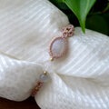 光の加減で魅力的なシラーが美しく現れ、手元を華やかでエレガントな印象のマクラメ編みブレスレットに仕上げました。