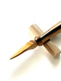 ペン先は、繊維が最も強靭で弾力と粘りのあるマダケを使用しています。しかも5年以上成育したマダケの地上から3~5節までの厚肉部分のみを、専用道具を自ら製作して手作業で丁寧に仕上げています。