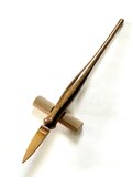 は、竹の持つしなやかさを利用して作れるのではないかと考え、さらにこのペン先を二重構造にして、その隙間にインクが溜まるように作りましたので、何回もインクをつける必要がなく、長く書き続けることが可能です。(筆圧や紙質にもよります)