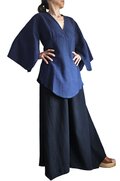 着物風の袖は大きくスリットが入ります。胸元は深めですので気になる方はインナーを着用下さい。