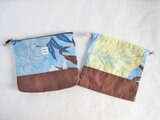 トロピカル柄のコットン生地で作ったポーチと巾着のセットです。