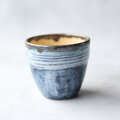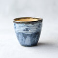 藍色と白色が混じり合いグラデーションを作る様が特徴の、抽象画のようにも見える肌合いのフリーカップです。