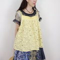レモンイエローのリネン×レース・前後OK2WAYキャミ