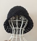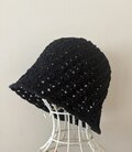 シンプルな 黒のコットン糸で編んだ、チューリップハットです。