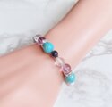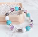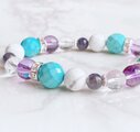 ターコイズブルーに、大理石模様のホワイトハウライト、そして美しいパープルのアメジストが高級感を高め、ネイビーブルーのアイオライトが全体を引き締めます!