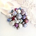 ~パール・ブーケ~バロック淡水真珠のブローチ(ホワイト・シルバー・パープル)