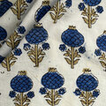 インド ブロックプリント生地 [50cm単位] Ajrak ブルーフラワーonアイボリー SA 花 レトロ IF0305