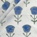 インド ブロックプリント生地 [50cmカット済み] ビッグフラワー ブルー ファブリック 花 IF0306