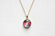 パールホワイトにピンクとブルーグレーを置いた、淑やかで上品なペンダント。