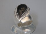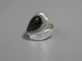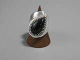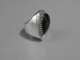 リングのサイズは13号、重さは20g 、最大幅は28mm、金属部分は純銀です。