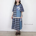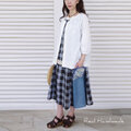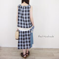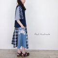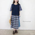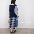 [Coordinate] グレイッシュブルーチェックと水彩花のリネンパッチキャミ(セットアップ可)