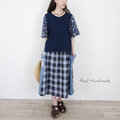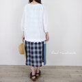 チェック・花柄・無地の3種リネンを切り替えて仕立てた、夏の風景に映えるスカート。