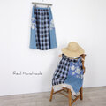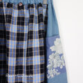 ラスト![予約販売] グレイッシュブルーチェックと水彩花のリネン切替サイドポケットスカート(セットアップ可)