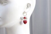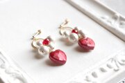 コットンパールの中で一つだけ色の違う赤色のチェコビーズがきらめく様が可憐なアクセントになっています。
