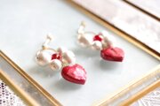【受注製作】レジンアート ハートとコットンパールのピアス〈愛の名残〉