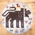 非常にインパクトのあるライオン柄のギャッベ円形座布団です。