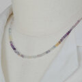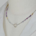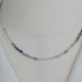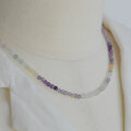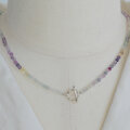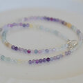 天然石には様々な色合いを持つ、3mmのカット入りフローライトをランダムに並べました。