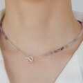 静かな波間と、キラキラ輝く天然石が首元を彩ります。