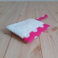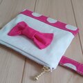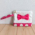 ミニ12cm☆持ち手付きの小さめフラットポーチ 生成帆布×マゼンタピンク 水玉/ドット 920