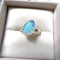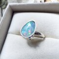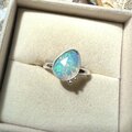 無事受け取りました。 とにかくオパールが綺麗〜!! 遊色がキラキラ、見ていて飽きません。 とても可愛らしいリングですね。 オパールはデリケートなので、大切に使わせて頂きますね。 南国の海の水面のような爽やかなリングとお出かけしたくなりました! この度も素敵な作品をありがとうございました(*^^*)