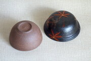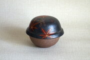 鈴形の蓋物に陶房の庭の紅葉を描いています。