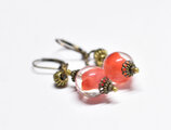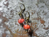 スカーレット×クリアまん丸ドイツヴィンテージビーズをリングへ繋いだピアスです。