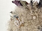 スモークツリーの中にブルーのエリンジウムの花や白い小花をあしらい