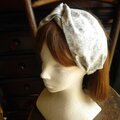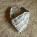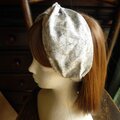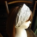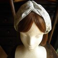 グレー地にモノトーンの花柄のオックス地のクロスヘアバンドです。