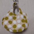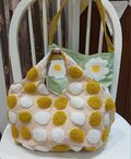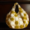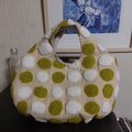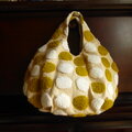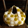 ニードルパンチ刺繍の水玉生地で作ったコロンとしたフォルムのトートバッグです。