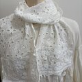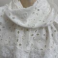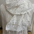 綿白ローンカットワーク刺繍生地にストールにフリンジをポイントにしました。