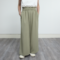 とろみ素材でストレスフリー、ウエストはゴムシャーリング仕様パンツ。