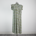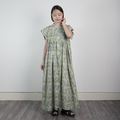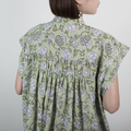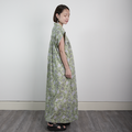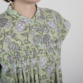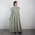 蒸し暑い時期にサラサラしたインド綿 ブロックプリントピンタックギャザーワンピース グリーン 0738GR