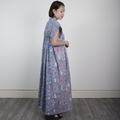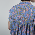 蒸し暑い時期にサラサラしたインド綿 ブロックプリントピンタックギャザーワンピース ブルー 0738BL