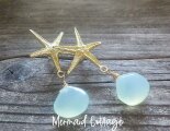 Mermaid Beach Earring ---人魚の耳飾り・ヒトデとカルセドニー☆スタッドピアス