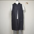カラーリネン◆お飾りフードのロングジレ◆チャコール◆フリーサイズ(中厚、リネン100%)~ジレ・ベスト~