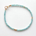 小粒サイズのラリマーとゴールドビーズを合わせたブレスレットです。細かなカットがキラキラと輝き、優しいブルーに癒されます。