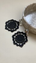 黒の糸と透けるビーズの組み合わせが、クラシカルな重厚感と繊細さを同時に演出します。