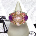銀河赤藤の煌めきリング(グラスビーズ チェコビーズ ビーズリング)《ビーズアクセサリー》