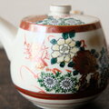 【サマー特価¥4400→¥2000】赤と白に芍薬◆九谷焼 花文赤絵金彩急須 丁寧な暮らしに。茶器 昭和レトロ 工芸品