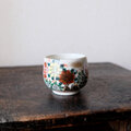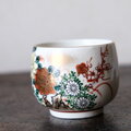 【サマー特価¥750→¥500】赤と白の芍薬◆美しい絵付け。九谷焼 赤絵金彩湯呑み 工芸品 和食器 昭和レトロ インテリア