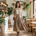 * スタイリング: ワンピースの上に羽織ったり、スカートやパンツと合わせたりと、オンオフ問わず活躍する汎用性の高い一枚です。
