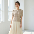 中細のシルクリネン糸を贅沢に使用し、繊細な透かし編みで仕上げた半袖カーディガンです。