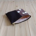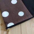 ドット柄のフラットポーチ 16cmファスナー 内ポケット ブラウン水玉×黒 344