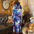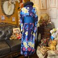【浴衣リメイク ロング ワンピース ドレス 帯サッシュベルト 和洋折衷 レトロ 古着 ハンドメイド 夜更けの群青を思わせる紺地に、さざ波のようなぼかしとともに咲き競うハイビスカス W-630】