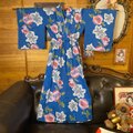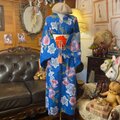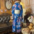 【浴衣リメイク ワンピース/ドレス/帯サッシュベルト 和洋折衷 レトロ 古着 ハンドメイド 澄んだ初夏の青空をそのまま閉じ込めたようなコバルトブルー W-633】