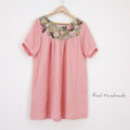 ・切り替え部分(胸元・後ろヨーク):綿麻(ローズ柄)