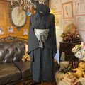 着物リメイク ワンピース/ドレス/洗える化繊 名古屋帯サッシュベルト 夜空を閉じ込めたようなブラックドット KW-1010