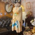 【 付け下げ着物リメイク ミニミディ ワンピース/ドレス/洗える化繊 名古屋帯サッシュベルト 柔らかなアプリコットカラーに陽だまりを閉じ込めた KW-1011 】