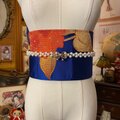 【 和洋折衷 2部式 作り帯 名古屋帯 リメイク ハンドメイド 群青の夜空に燃えるような朱赤の紫陽花 2B-34 】