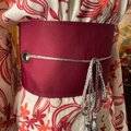 浴衣リメイク ミニミディ ワンピース ドレス 帯ベルト 和洋折衷 唐草のようにうねるワインレッドと朱の花弁。 W-654
